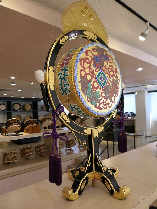 A 11h, nous sortons du musée, et entrons aussi tôt dans le bâtiment de l’autre côté du carrefour : le Taikokan Drum Museum. Il s’agit d’un petit musée gratuit sur les taiko, les tambours japonais. Des mikoshi, des sanctuaires miniatures portatifs, sont exposés au sein du premier étage ainsi qu’au rez-de-chaussée.
