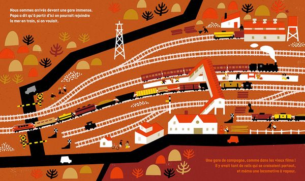Cet ouvrage nous transporte dans un univers haut en couleur, où les paysages sont des aplats dominés par une géométrie simple et intuitive, où les scénarios qui nous sont présentés se décryptent aisément au fil de l’histoire. Les zones de textes sont facilement compréhensibles et lisibles, sans pour autant prendre le pas sur l’image, car les paragraphes sont disséminés aux abords des pages, comme une note de texte narrative discrète.