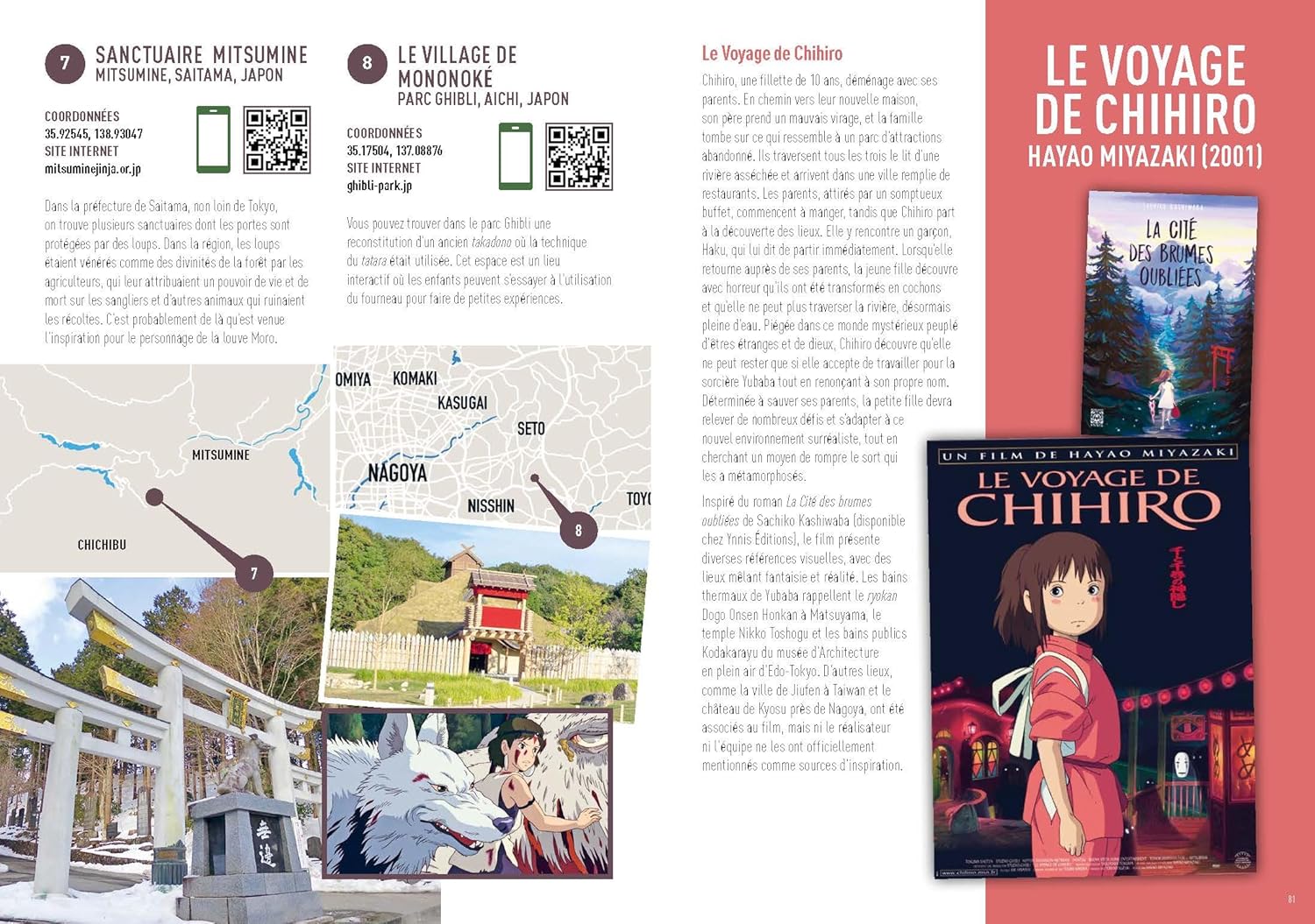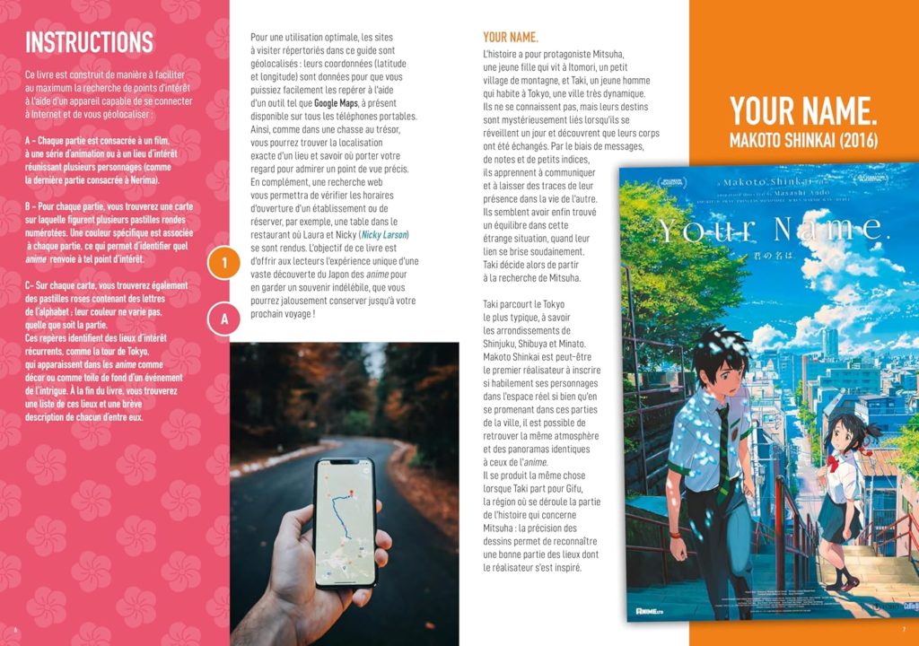 A travers un savant mélange de scènes issues des animés/films, de photographies réelles et d’anecdotes, l’autrice nous propose des itinéraires hauts en couleur !